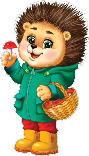 ФМ1-16285 Плакат вырубной А4. Осенний ежик с корзиной грибов (двухсторонний)