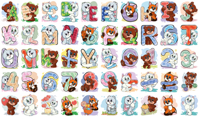 НМ-14877 Набор наклеек для поощрения. Английский алфавит. Зверюшки (квадратные, 50 шт. на листе)
