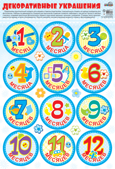 Н-10624 Наклейки А3+. По месяцам для фотосессии мальчиков