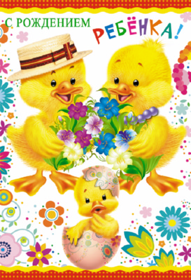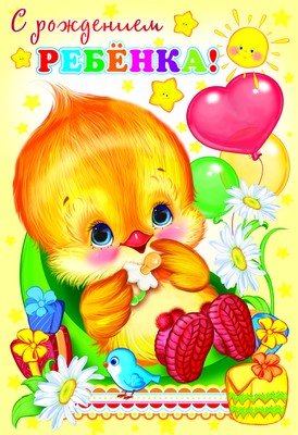 ЦР-10205 Открытка среднего формата С рождением ребенка! Текст (блестки в лаке,конгревное тиснение)