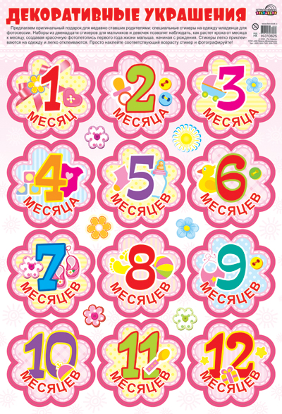 Н-10625 Наклейки А3+. По месяцам для фотосессии девочек