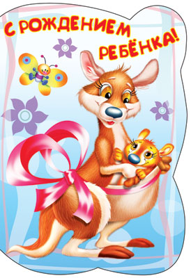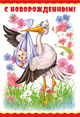 ЦР-10204 Открытка среднего формата С новорожденным! Текст (блестки в лаке,конгревное тиснение)