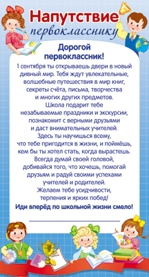 ШМ-13525 Мини-диплом. Напутствие первокласснику (формат 105х202 мм)