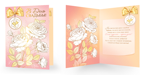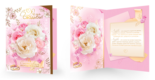 СФ1-16369 Открытка среднего формата. В День Свадьбы! Счастливым молодоженам! Текст (золотая фольга)