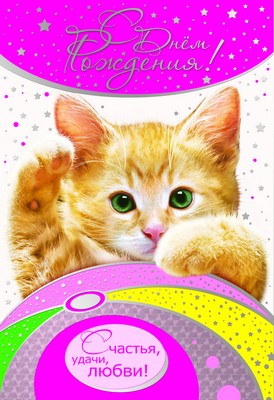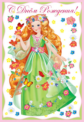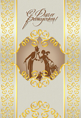 Ц-6684 Открытка среднего формата С Днем Рождения! Текст (блестки в лаке, конгревное тиснение)