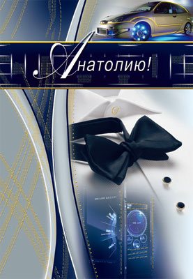 ЦИ-6715 Открытка среднего формата Анатолию! Мужская. Текст (конгревное тиснение,серебряная фольга)