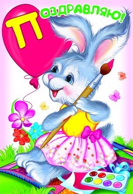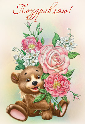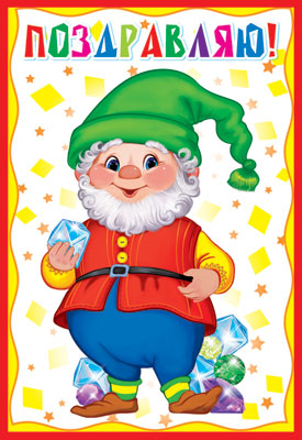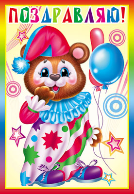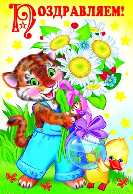 Д-12118 Открытка среднего формата. Поздравляю! Детская. Текст (конгревное тиснение)