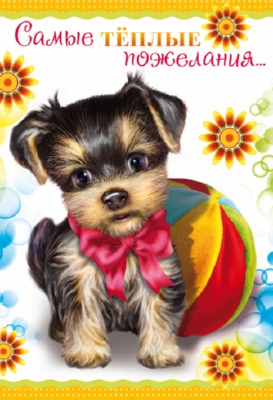 Д-10207 Открытка среднего формата. Самые теплые пожелания... Детская. Текст (блестки в лаке)