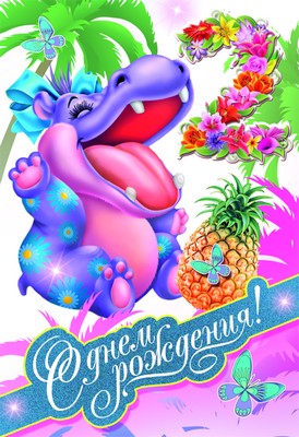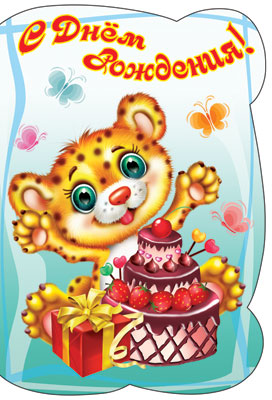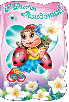 Д-8012 Открытка среднего формата С днем рождения! Детская. Текст (блестки в лаке, конгревное тиснение)