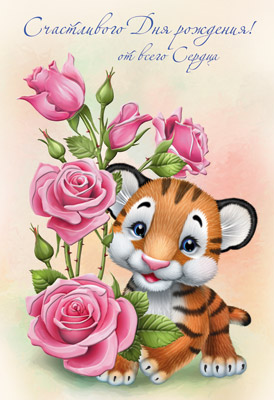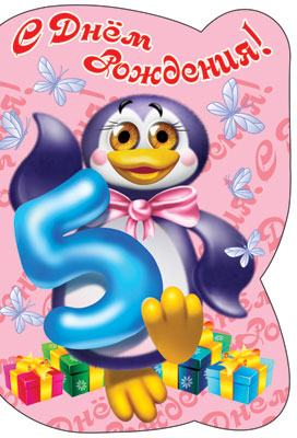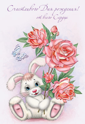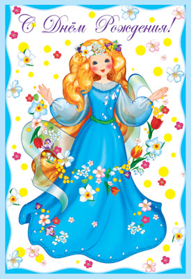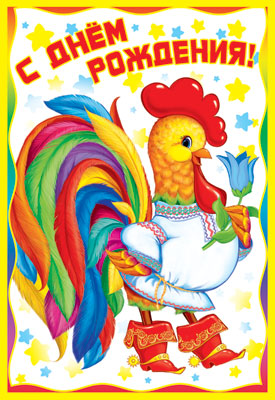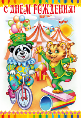Д-12108 Открытка среднего формата. С Днем Рождения! Детская. Текст ( конгревное тиснение)
