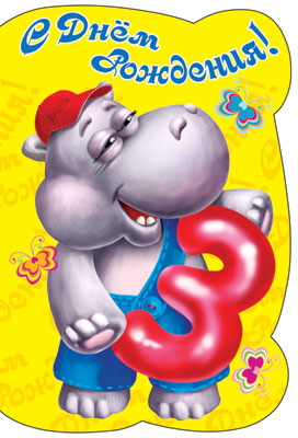 ЛН-10488 Открытка среднего формата. С Днем Рождения 3 годика (для девочки) (с блестками в лаке, конгревное тиснение)