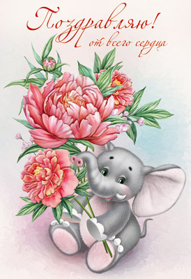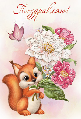 Д-12114 Открытка среднего формата. Поздравляю! Детская. Текст (конгревное тиснение)