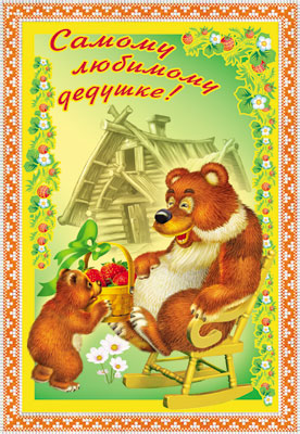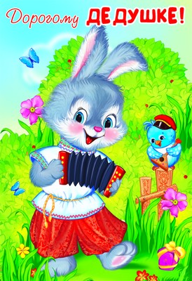 ЦР-8654 Открытка среднего формата Дорогому дедушке! Детская. Текст (блестки в лаке, конгревное тиснение)