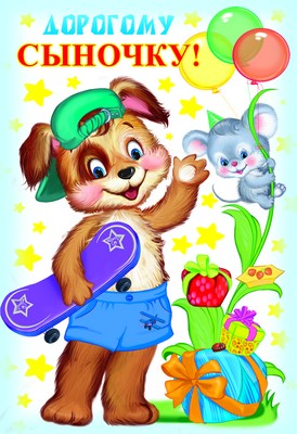 ЦР-8652 Открытка среднего формата Дорогому сыночку! Детская. Текст (блестки в лаке, конгревное тиснение)
