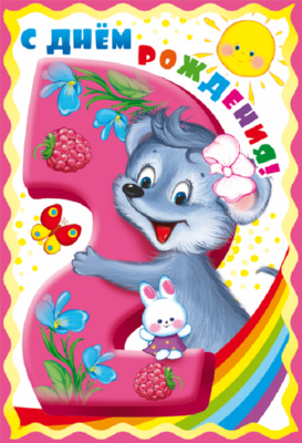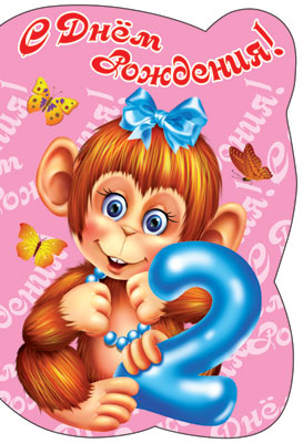 ЛН-10486 Открытка среднего формата. С Днём Рождения 2 годика (для девочки) (с блестками в лаке, конгревное тиснение)
