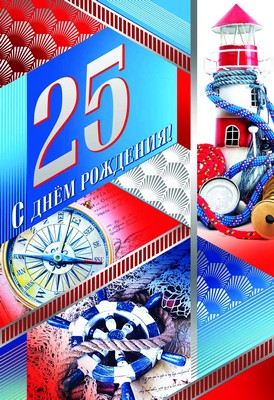 ОФК-9971 Открытка А4. С Днем рождения 25! Текст (серебряная фольга, конгревное тиснение)