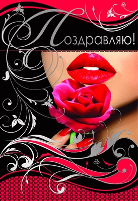 Ц-8308 Открытка среднего формата. Поздравляю! Текст (конгревное тиснение,серебряная фольга)