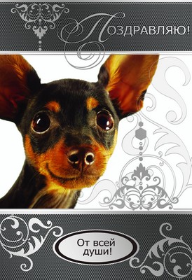 З-8304 Открытка среднего формата. Поздравляю! От всей души! Текст (серебряная фольга)