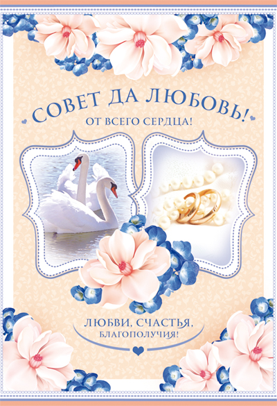 Ц-10928 Открытка среднего формата. Совет да любовь! (текст, блестки в лаке, конгревное тиснение)