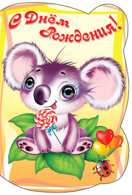 Д-12116 Открытка среднего формата. Счастливого Дня Рождения! Детская. Текст (конгревное тиснение)
