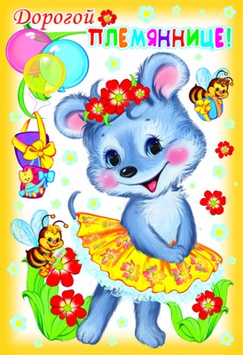 ЦР-11159 Открытка среднего формата Любимой Племяннице! Текст (блестки в лаке, конгревное тиснение)