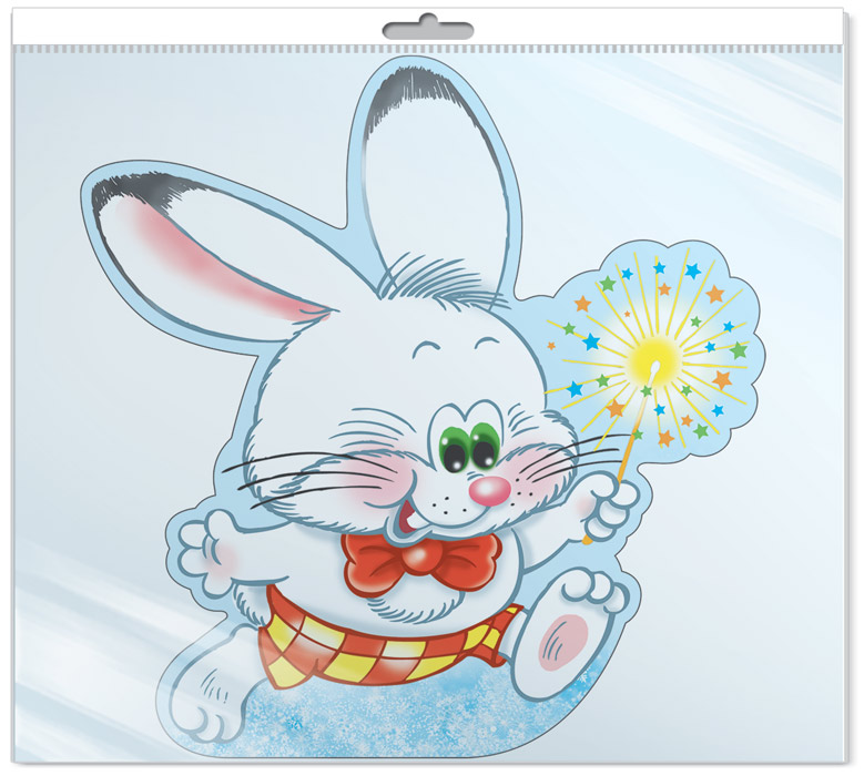 *ФМ-14452 ПЛАКАТ ВЫРУБНОЙ А4 В ПАКЕТЕ. Зайчик с бенгальским огнем (УФ-лак, в индивидуальной упаковке, с европодвесом и клеевым клапаном)