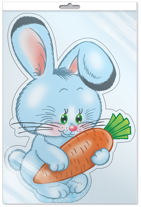 *ФМ-14451 ПЛАКАТ ВЫРУБНОЙ А4 В ПАКЕТЕ. Зайчик с морковкой (УФ-лак, в индивидуальной упаковке, с европодвесом и клеевым клапаном)