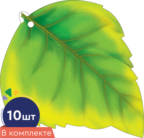 *КМ-16754 Набор украшений на скотче. Листочки. Береза желто-зеленая (10 шт. в наборе)