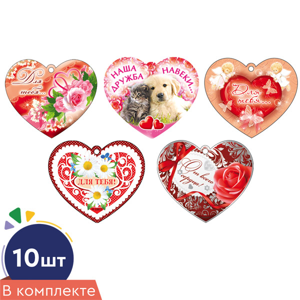 *ВА-18016 Комплект больших валентинок-сердечек. От всего сердца с нежностью (6 шт.: 3 вида по 2 шт.)