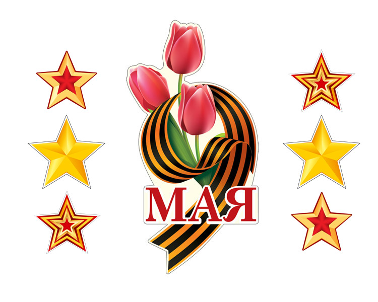 *КБ-16482 Комплект для оформления интерьера. 9 мая (плакат А4 и 3 вида звезды по 2 шт.)