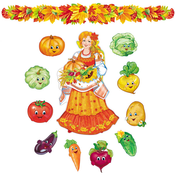 *КБ-16668 Комплект для оформления интерьера. Праздник урожая (13 фигур овощей А4)