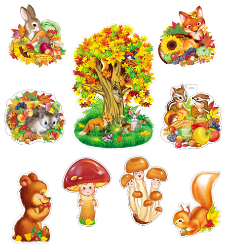 *КМ-17570 Комплект для оформления интерьера на скотче. Звери в дарах осени (5 фигур А4)