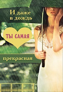 Д-5736 Открытка среднего формата И даже в дождь ты самая прекрасная... Юношеская. Текст (золотая фольга)