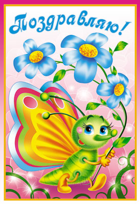 Д-5228 Открытка среднего формата Поздравляю! Детская. Текст (блестки в лаке)