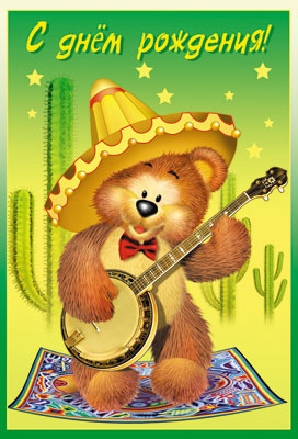 Д-5223 Открытка среднего формата С Днем Рождения! Детская. Текст (блестки в лаке)