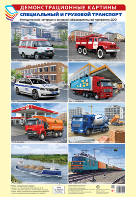 Демонстрационные картины А3. Специальный и грузовой транспорт.Методич. мат-л к ООП ДОО (8 картин