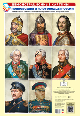 Демонстрационные картины А3. Полководцы и флотоводцы России.Методич. мат-л к ООП ДОО (8 карт)