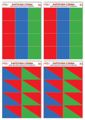 Комплект познавательных мини-плакатов. Карточки-схемы для фонетического разбора (4 листа А4+, текст на обороте)