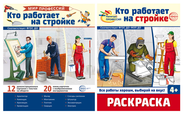 *Комплект. Кто работает на стройке. Демонстрационные картинки и раскраска