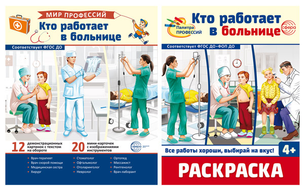 *Комплект. Кто работает в больнице. Демонстрационные картинки и раскраска