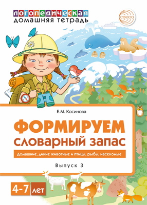 Домашняя логопедическая тетрадь. Формируем словарный запас. Тетрадь 3: Домашние животные, дикие животные, животные холодных и жарких стран, дикие птицы, домашние птицы, насекомые, рыбы (4-7 лет)