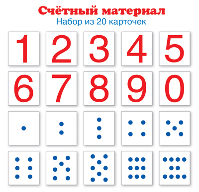 Счетный материал. Набор из 20 карточек. Цифры, числовые кружки (Математические ступеньки, 4-5 лет, 5-6 лет, 6-7 лет)