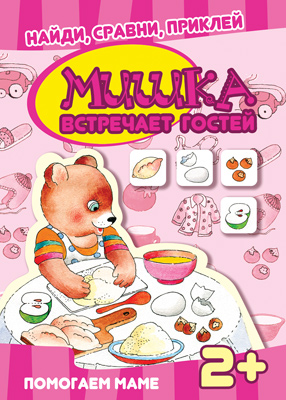 Найди, сравни, приклей. Мишка встречает гостей. Многоразовые наклейки для детей от 2 лет
