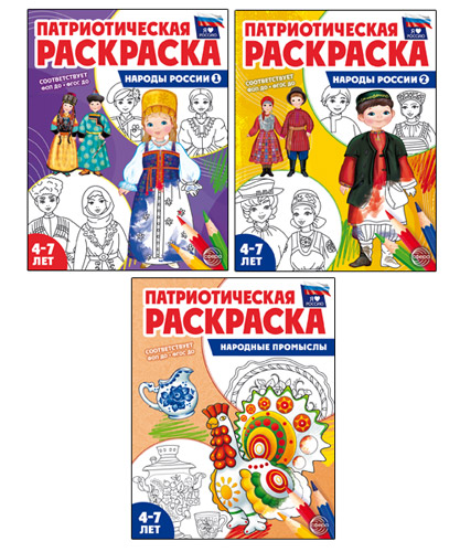 *Комплект книг. Патриотическая раскраска: Народы России и Народные промыслы (3 раскраски, 4-7 лет)
