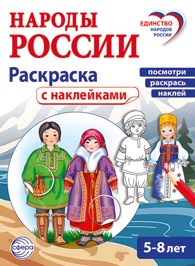 Народы России: раскраска с наклейками. Посмотри, раскрась, наклей (для детей 5-8 лет)