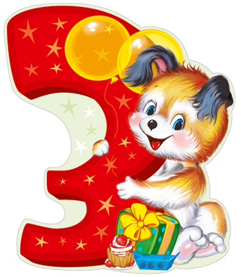 ФМ1-13895 Плакат вырубной А4. 3 годика (УФ-лак)