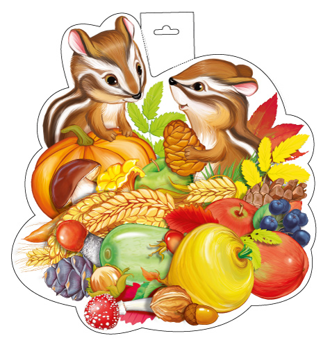ФМ1-12871 Плакат вырубной А4. Бурундучки в дарах осени (Уф-лак)