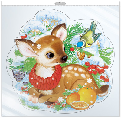 *ФМ1-12939 ПЛАКАТ ВЫРУБНОЙ А4 В ПАКЕТЕ. Олененок в дарах зимы (УФ-лак, в индивидуальной упаковке, с европодвесом и клеевым клапаном)