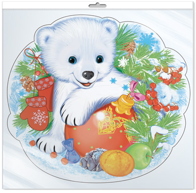 *ФМ1-12938 ПЛАКАТ ВЫРУБНОЙ А4 В ПАКЕТЕ. Медвежонок в дарах зимы (УФ-лак, в индивидуальной упаковке, с европодвесом и клеевым клапаном)