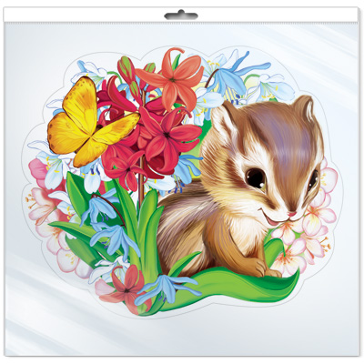 *ФМ1-13227 ПЛАКАТ ВЫРУБНОЙ А4 В ПАКЕТЕ. Бурундучонок весенний (УФ-лак, в индивидуальной упаковке, с европодвесом и клеевым клапаном)